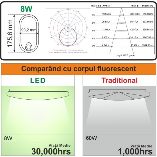 Economisiți energie și oferiți iluminare eficientă. Instalare usoara aplicati precum, scară bloc, hol, subsol, garaj, baie, dulap, și multe altele.