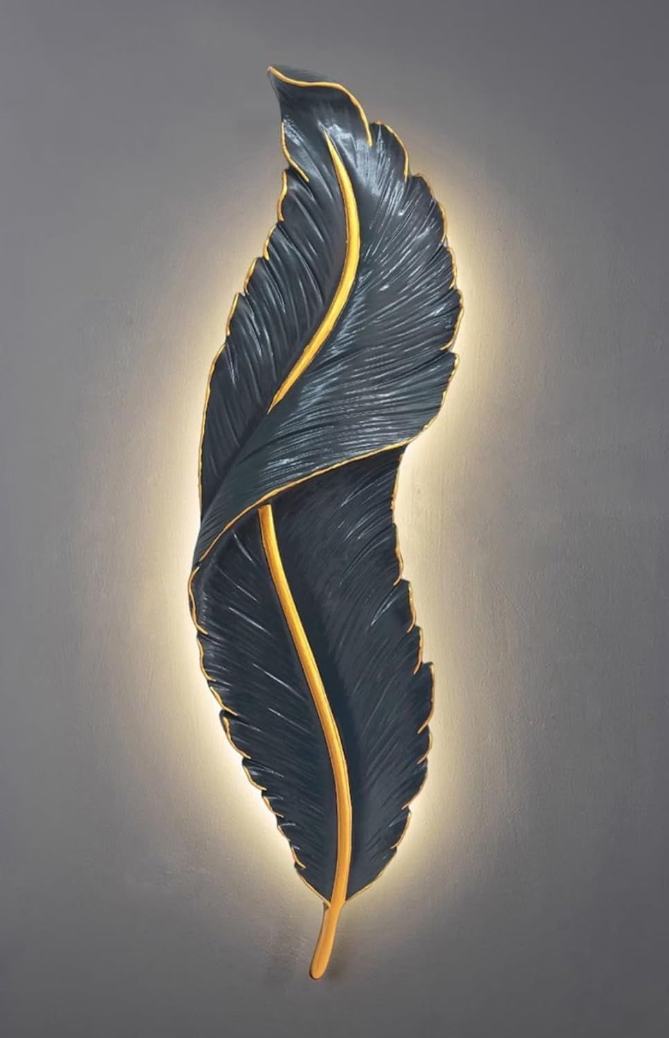 Elegantă și expresivă, Aplica LED model Pană cu finisaj auriu/negru adaugă o notă de rafinament oricărui interior. Designul său artistic inspirat din natură se potrivește perfect în amenajări moderne, contemporane sau glam.