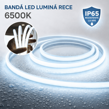 ❄️ Bandă LED COB 220V, IP65, 280 LED/m, Lumină Rece 6000K, 8W/m