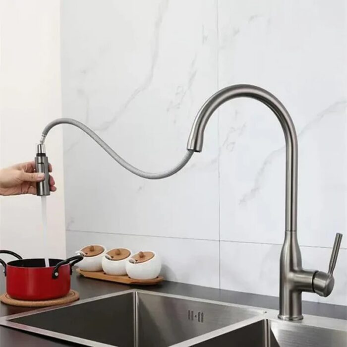 - Pipă Extensibilă: Pipă extractabilă pentru o rază extinsă și o mișcare mai amplă. Aceasta oferă flexibilitate maximă, facilitând spălarea vaselor mari și accesul în toate colțurile chiuvetei.