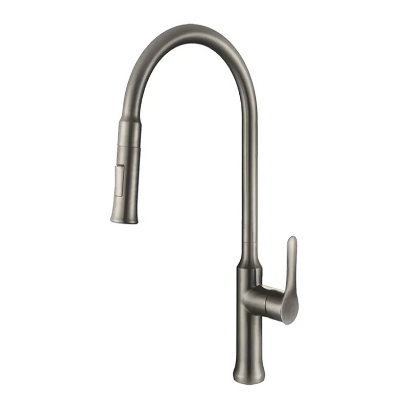 Baterie Bucătărie din Inox, Pipă extensibilă cu Comandă Dublă, Racord inclus, Gri