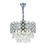 Candelabru Glass Model 75003/400, cu cristale strălucitoare și finisaj argintiu, 5 surse E14, ideal pentru living sau dining. Becurile nu sunt incluse.