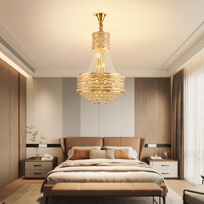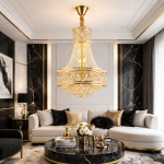 Candelabrul Royal auriu cu 9 surse de iluminare E14 este alegerea perfectă pentru interioare elegante și rafinate. Designul său clasic, inspirat din stilul regal, transformă orice încăpere într-un spațiu sofisticat.