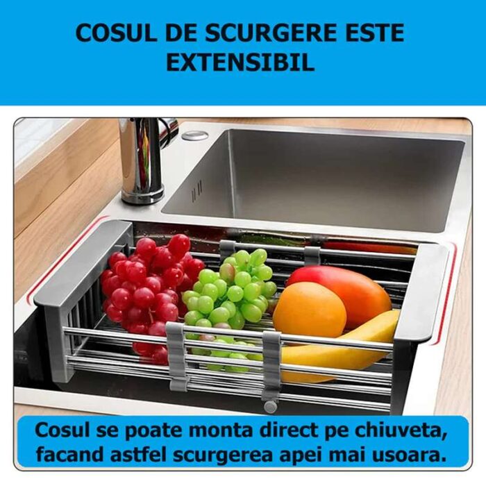 Unul dintre punctele sale forte este scurgătorul extensibil inclus, care vă permite să adaptați spațiul de lucru la nevoile dvs. în funcție de cantitatea de vase și veselă pe care le utilizați. Scurgerea este, de asemenea, inclusă, făcând instalarea și utilizarea cât mai simplă posibilă.