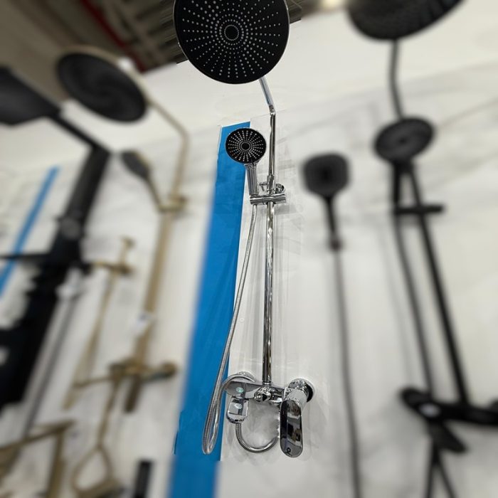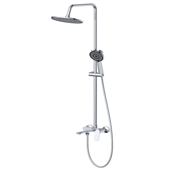 Transformă baia ta într-un spațiu de relaxare cu Coloana de duș cu baterie încorporată, un sistem complet ce oferă 3 funcții esențiale: palarie de duș, pară de duș și baterie pentru cadă. Cu un design elegant crom și o construcție durabilă din alamă, această coloană de duș este perfectă pentru un decor modern și sofisticat.