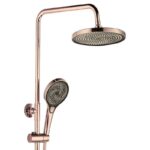 Această coloană de duș este realizată din alamă, un material durabil și rezistent la coroziune, ceea ce garantează durabilitatea și fiabilitatea pe termen lung. Culoarea sa deosebită este Rose Gold, adăugând o notă de eleganță și rafinament în baia dvs.
