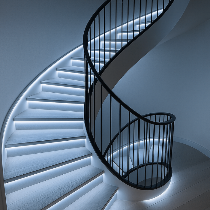 ✔ Senzori de mișcare – Activează iluminarea automat atunci când detectează prezența pe scară.