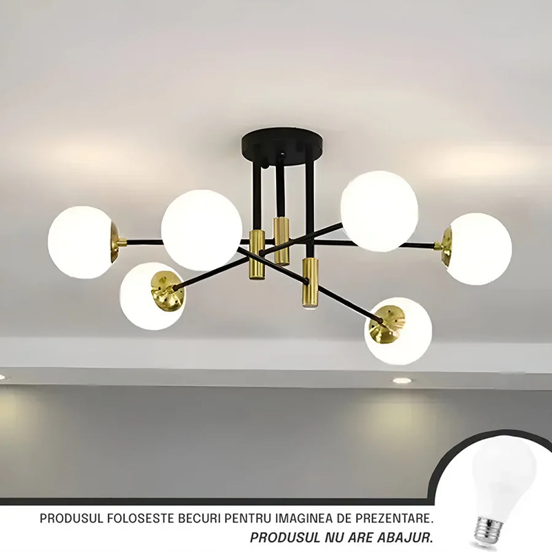 Cu cele 6 surse de iluminat E27, această lustră oferă suficientă luminozitate pentru spații generoase, păstrând în același timp o estetică minimalistă și rafinată.