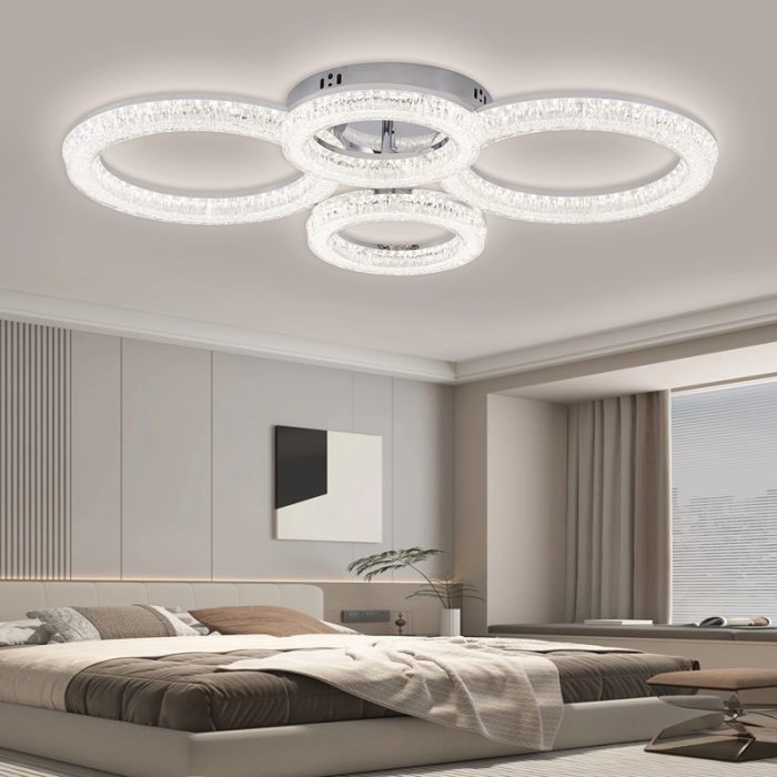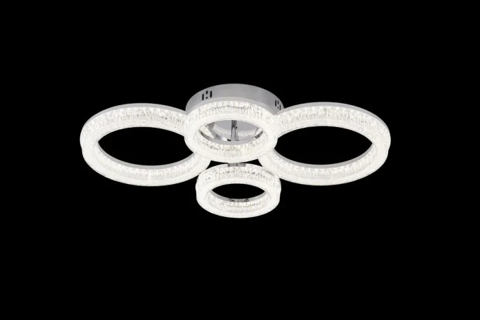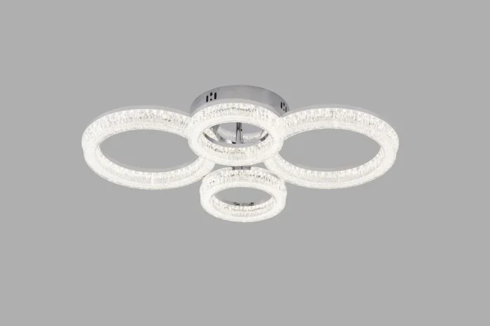 Lustra LED cu 4 cercuri este un corp de iluminat modern, elegant și eficient, ideal pentru spații medii în care este nevoie de o iluminare uniformă și adaptabilă. Designul circular minimalist, împreună cu finisajul argintiu sofisticat, o fac potrivită pentru livinguri, dormitoare spațioase, birouri sau zone open-space.