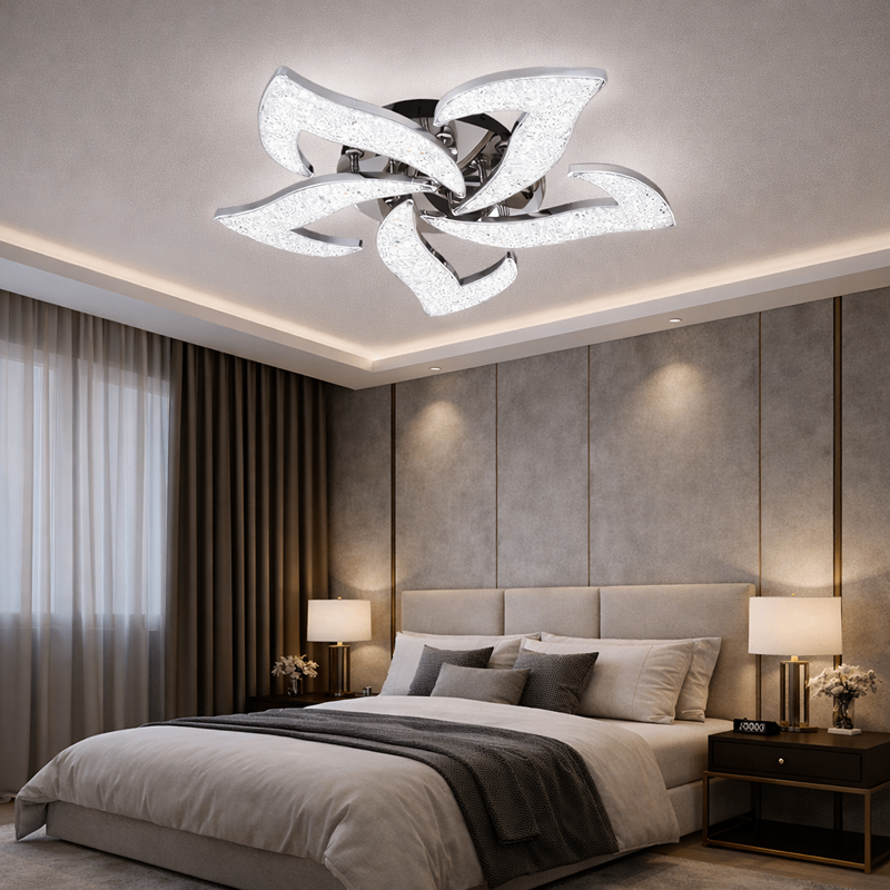 Lustra LED cu 5 petale argintii este un corp de iluminat modern cu accente elegante, creat pentru spații în care designul contemporan și iluminarea eficientă sunt esențiale. Forma sa decorativă, inspirată din linii organice, împreună cu finisajul argintiu sofisticat, transformă lustra într-un punct central de atracție pentru livinguri, dormitoare sau birouri moderne.