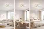 Cele 6 surse LED integrate oferă o putere totală de 108W, asigurând o iluminare uniformă și confortabilă. Cu ajutorul telecomenzii incluse, poți regla rapid temperatura de culoare (rece, neutră sau caldă) și intensitatea luminii, adaptând atmosfera în funcție de momentul zilei sau de activitate.