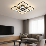 Lustra LED 8 Patrate, Intensitate Reglabila, 216W, Negru