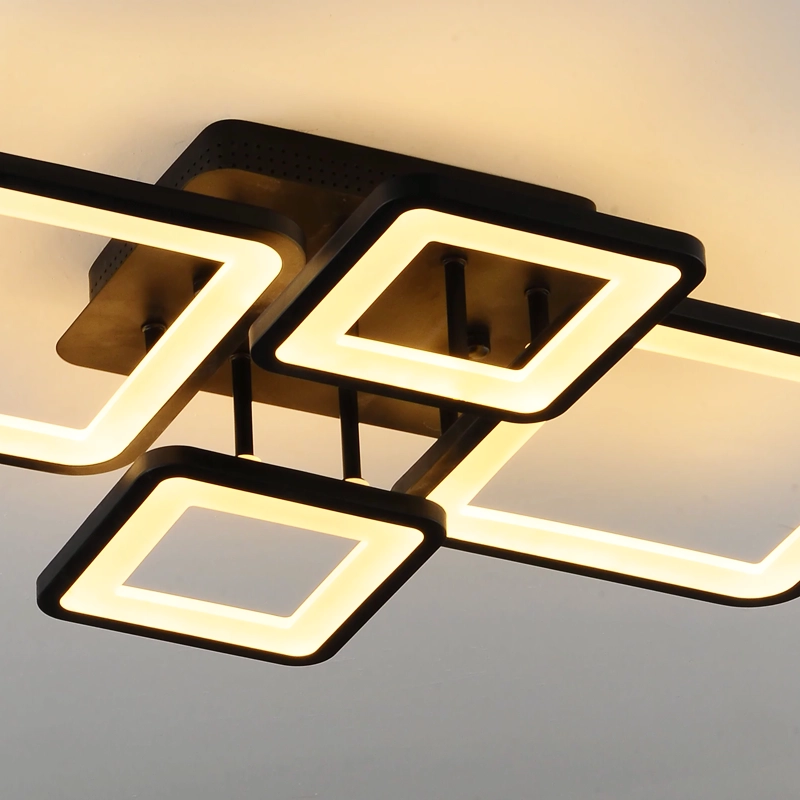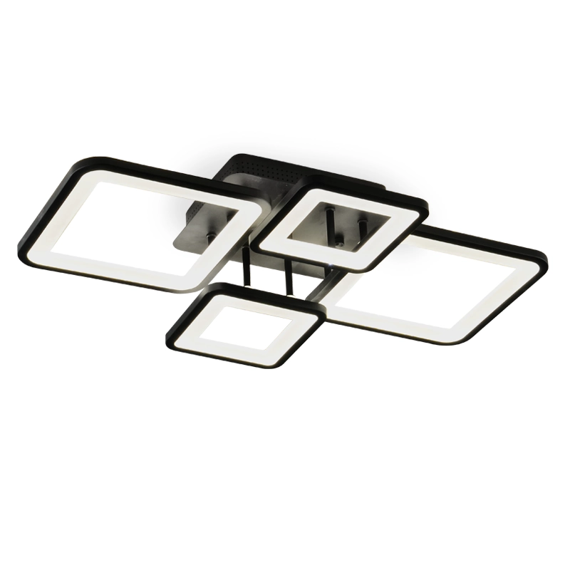 Lustra LED Patrata 2+2 cu Telecomanda, 3 Tipuri De Lumina, 128W, Negru