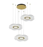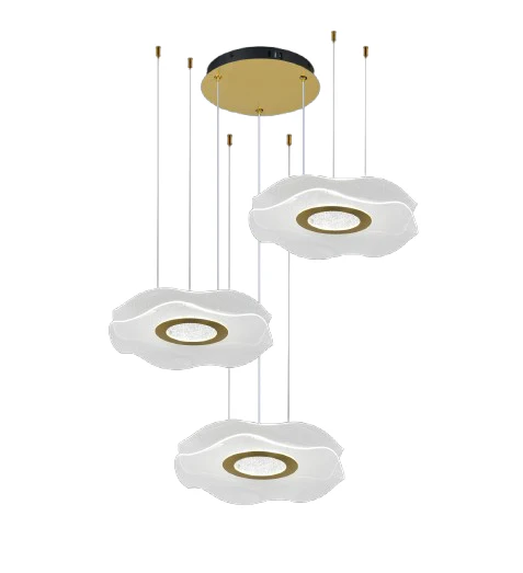 Lustră LED tip pendul, 126W, telecomandă inclusă, 3 tipuri de lumină și intensitate reglabilă. Înălțime ajustabilă, design elegant auriu, ideală pentru masă, dining sau insulă de bucătărie.