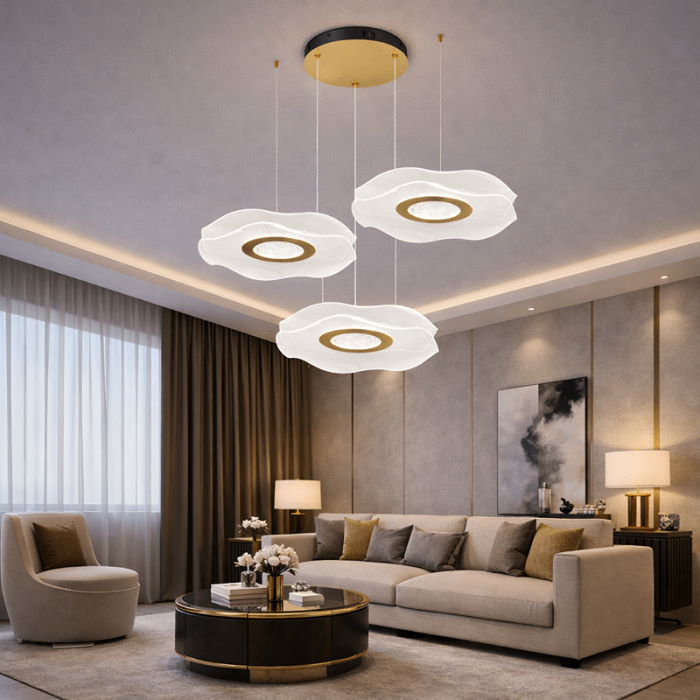 Cu ajutorul telecomenzii incluse, poți regla rapid temperatura de culoare – rece, neutră sau caldă – precum și intensitatea luminii, adaptând atmosfera în funcție de momentul zilei sau de activitate. Designul modern, completat de finisajul auriu și detaliile din metal și cristal, adaugă un plus de rafinament oricărui interior contemporan.