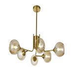 Lustră N6802-6, Auriu, cu 6 Abajururi din Sticlă, Soclu E27, Design Modern