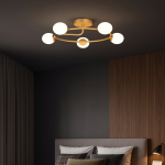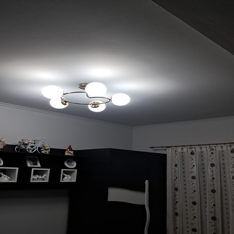 Lustra Venus adaugă o notă de eleganță și rafinament oricărui interior cu designul său sofisticat și finisajul auriu strălucitor. Cu cinci abajururi care găzduiesc becuri de tip E27, această lustră este ideală pentru a oferi un iluminat uniform și decorativ în încăperi precum sufrageria, dormitorul sau biroul.
