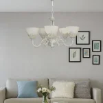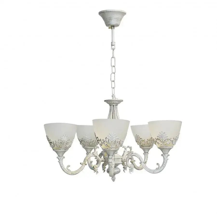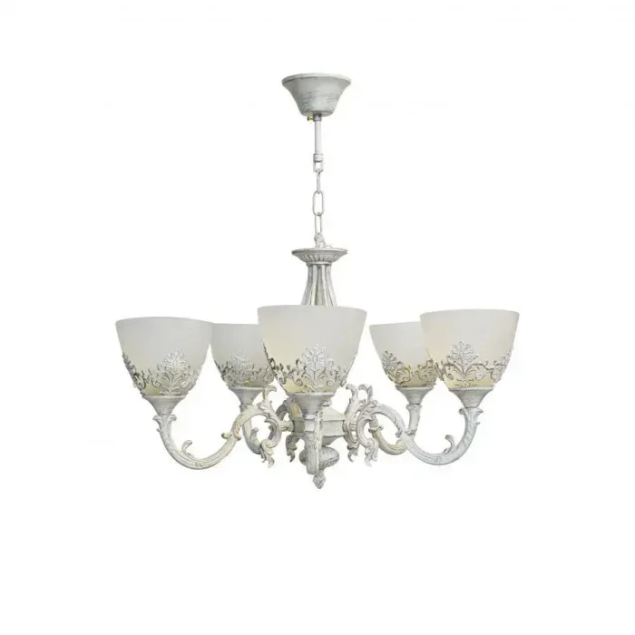 Lustra VINTAGE, tip Pendul cu brate, Circulara, 5xE27, Sticla si Metal, Alb