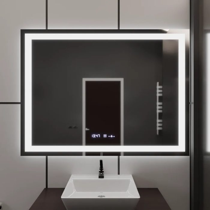 Oglinda LED 100×75 cm, Senzor Premium, Dezaburire, Ceas si Temperatură, Lumina Rece/Calda/Neutra Dimabila