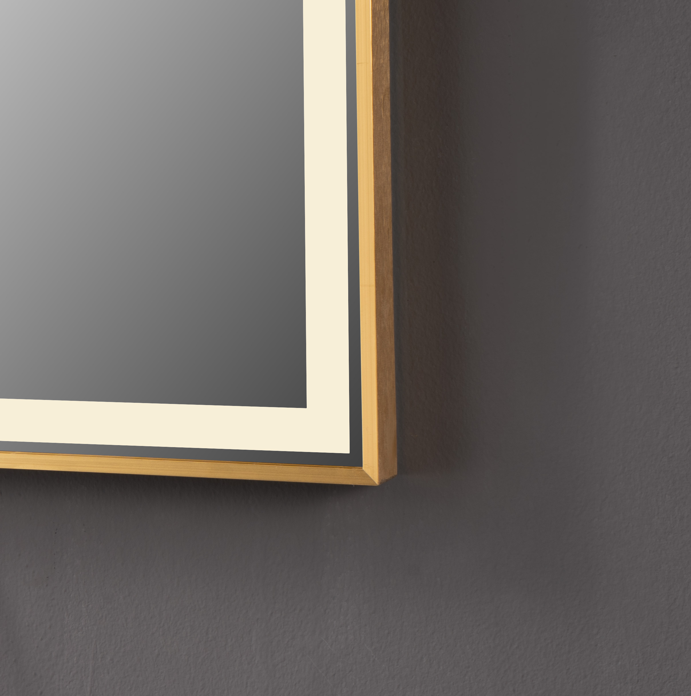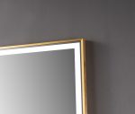 Oglindă LED dreptunghiulară cu rama aurie 60×80 cm, 3 tipuri de lumină, dimabilă, senzor miscare a mainii, ceas & temperatură, dezaburire automată, IP44, sticlă 5 mm fără cupru. Premium pentru baie.