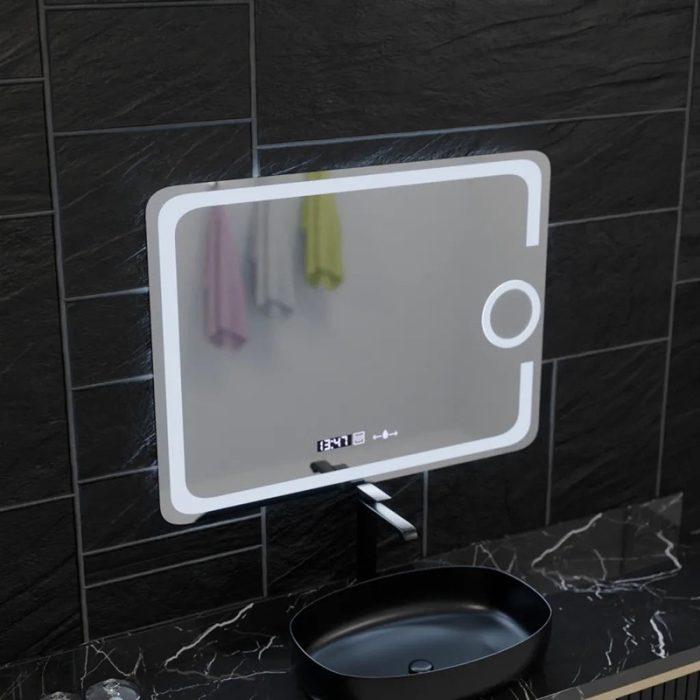 Îmbină eleganța cu funcționalitatea avansată! Oglinda LED 80×60 cm este alegerea ideală pentru un spațiu modern, oferind iluminare inteligentă, funcții premium și un plus de confort în utilizare.
