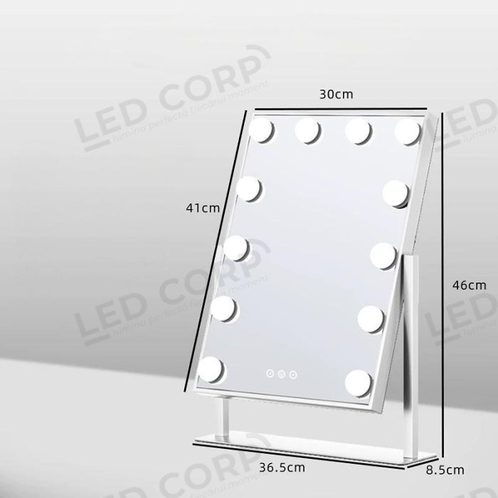 Oglinda LED Makeup, Buton Touch, 3 Tipuri de Lumina