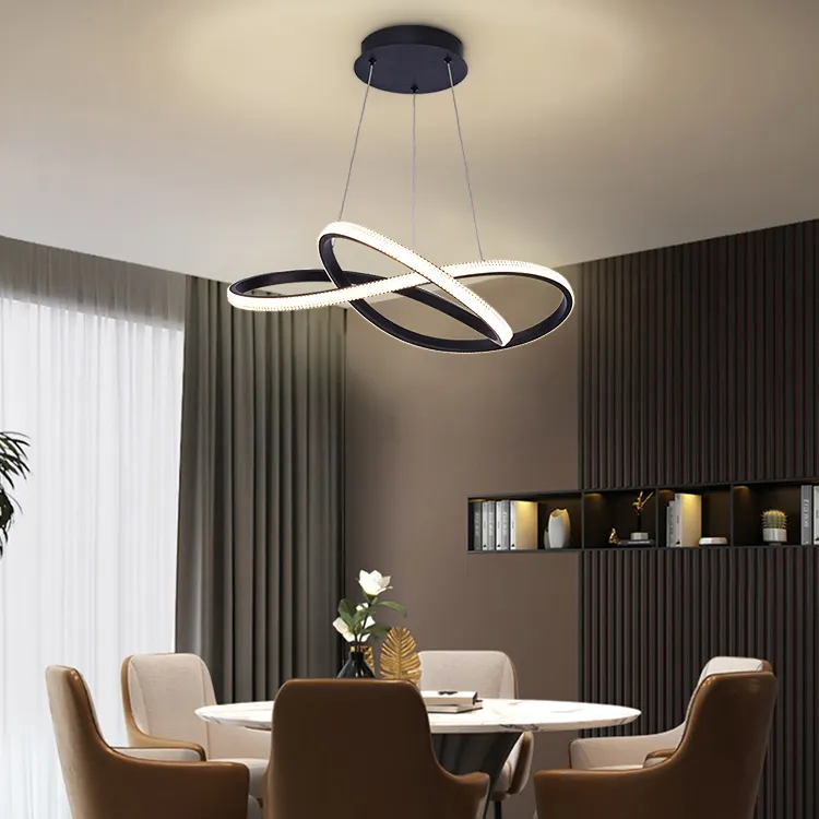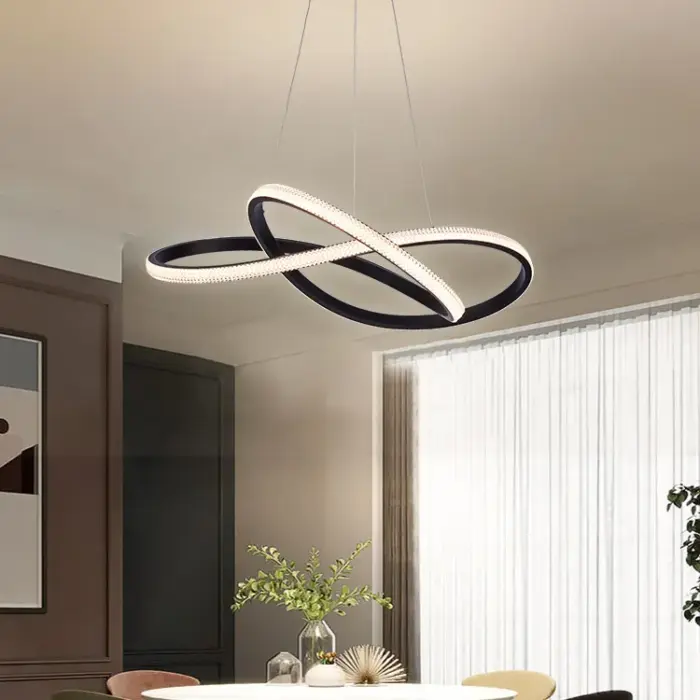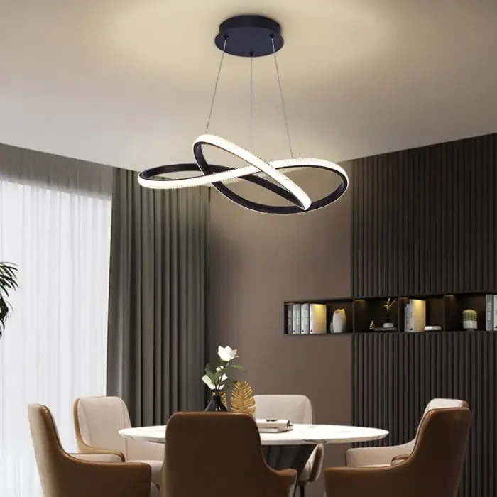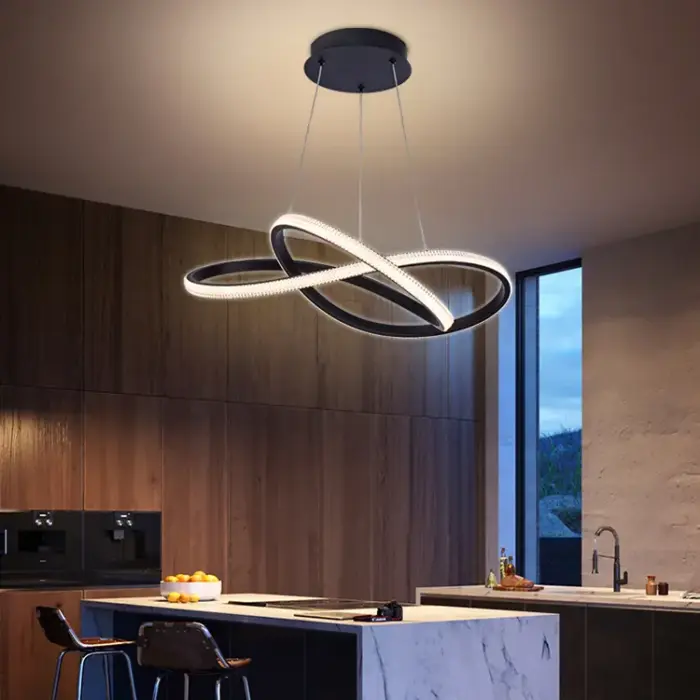 Pendul LED Chance, 3 tipuri de lumina – schimbare din intrerupator prin apasari succesive, inaltime reglabila, 104W, Negru.