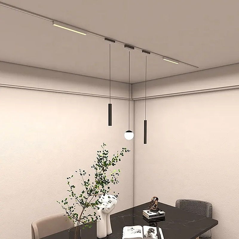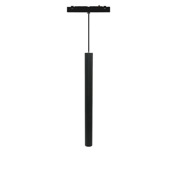 Pendul LED pentru șină magnetică aplicată slim, 6W, lumină neutră (4000K), cu finisaj negru elegant. Ideal pentru iluminat punctual sau decorativ, oferă un fascicul concentrat de lumină și un aspect modern, perfect pentru zone de lucru, baruri sau spații comerciale rafinate. Montaj ușor și eficiență energetică ridicată.