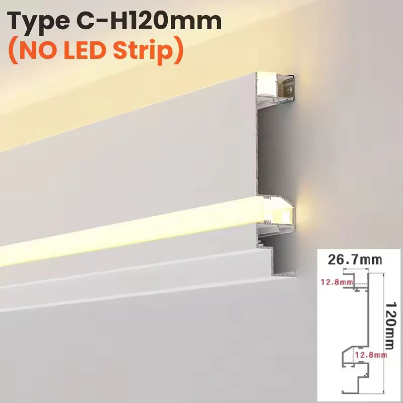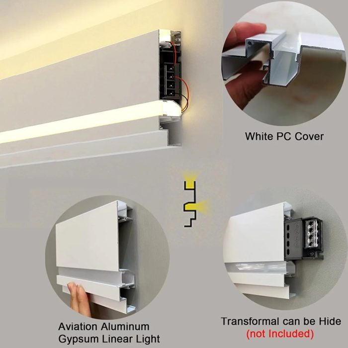 Dimensiuni generoase: Cu o lungime de 3 metri, profilul oferă spațiu suficient pentru integrarea benzii LED și permite acoperirea unei game largi de aplicații decorative și funcționale.