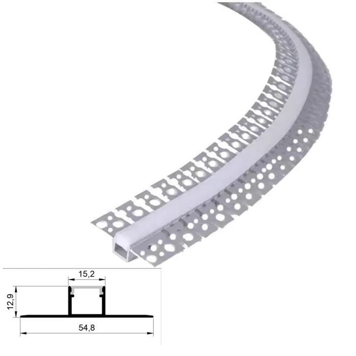 Profil LED Incastrat Pentru Finisaj Glet, Flexibil, Lungime 3m, Latime 1.5cm
