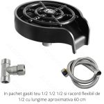 Spalator pahare, Kit spalare rapida sub jet presiune apa, 5 orificii de pulverizare, Otel inoxidabil, Negru